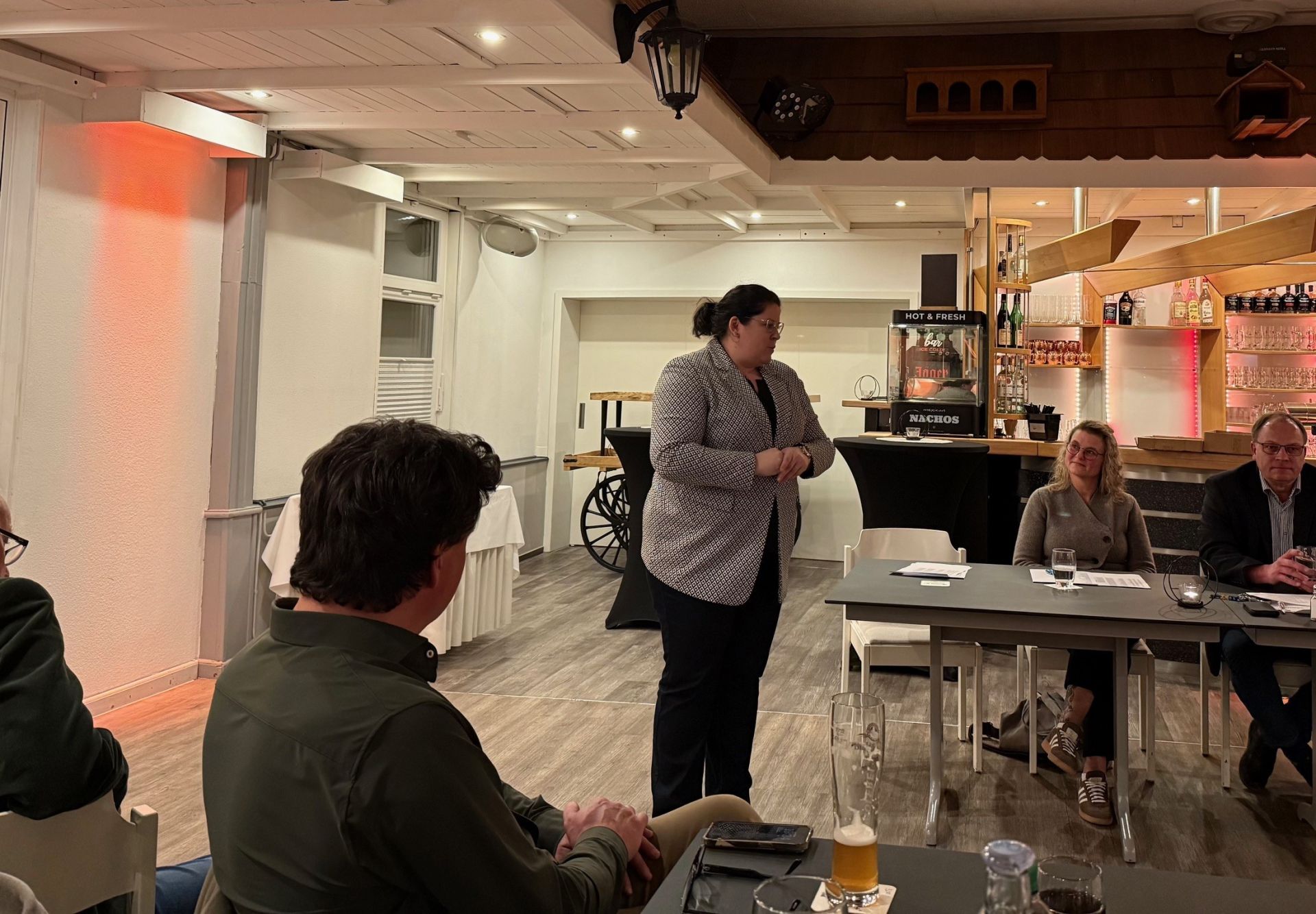Lena Düpont ging im Anschluss an ihr Grußwort auf die Besonderheiten und Herausforderungen des Katastrophenschutzes in Europa sowie dessen Verzahnung mit Ländern und Kommunen ein. David Artschwager gab nach seinem Grußwort einen Ausblick auf aktuelle Themen aus dem Kreisverband und berichtete in seiner Eigenschaft als Fraktionsvorsitzender zudem aus dem Stadtrat.
